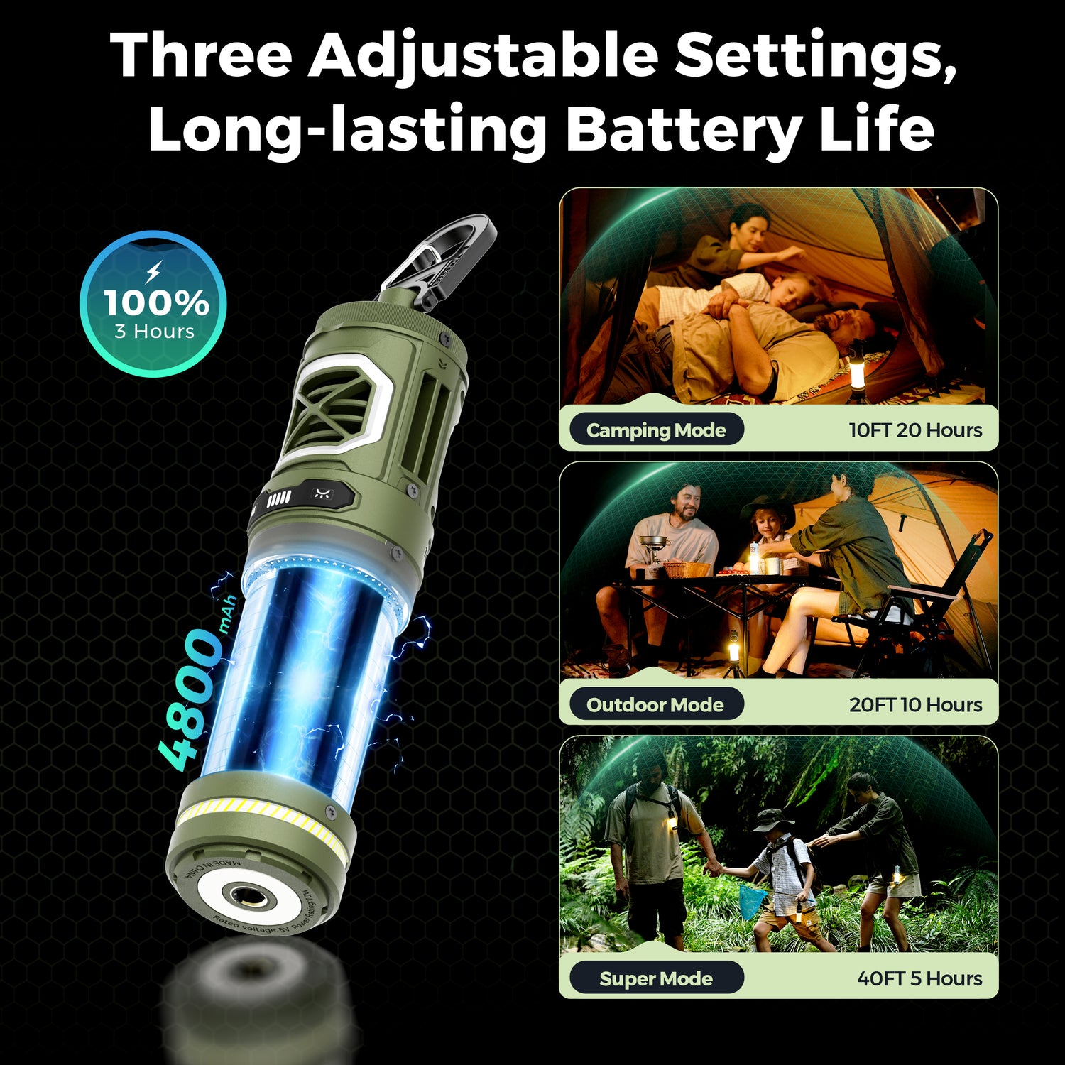 - Tres modos de uso: camping, outdoor y súper.