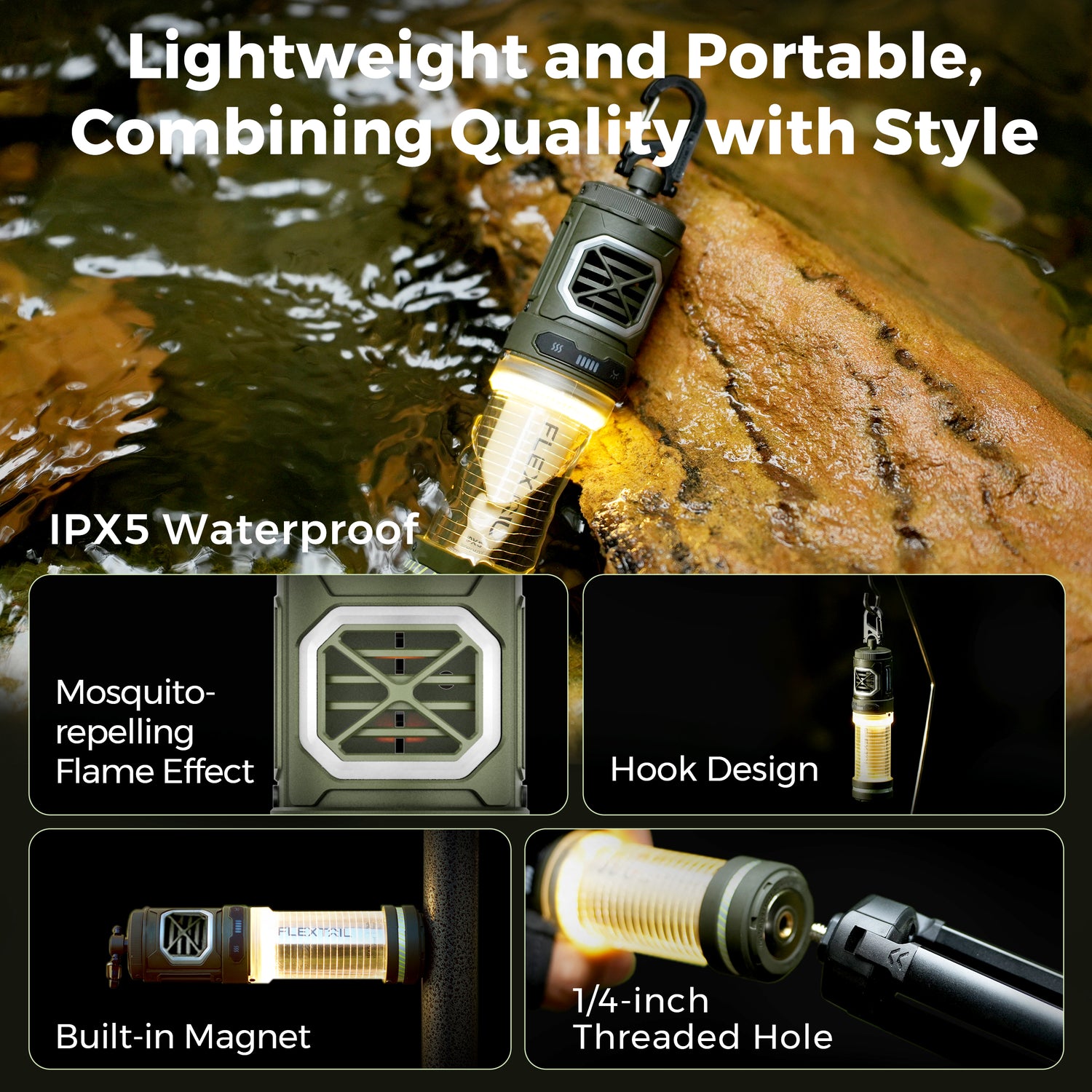 Repelente espacial compacto 2 en 1, repelente de insectos y linterna: